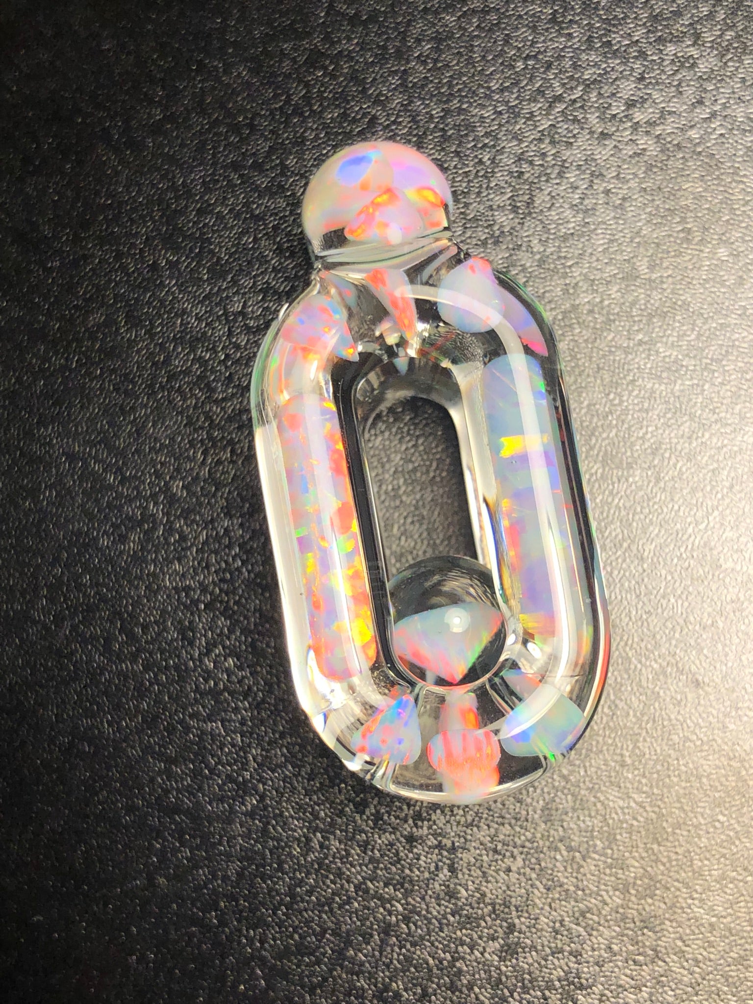 El colgante de vidrio cinético original diseñado y creado por JNG Studios en 2017. Único y elegante para cualquier ocasión. Cada colgante cinético presenta una canica con un ópalo sintético en su interior. La canica rueda hacia adelante y hacia atrás dentro del colgante. Estos llamativos colgantes captarán tu atención durante horas y horas.