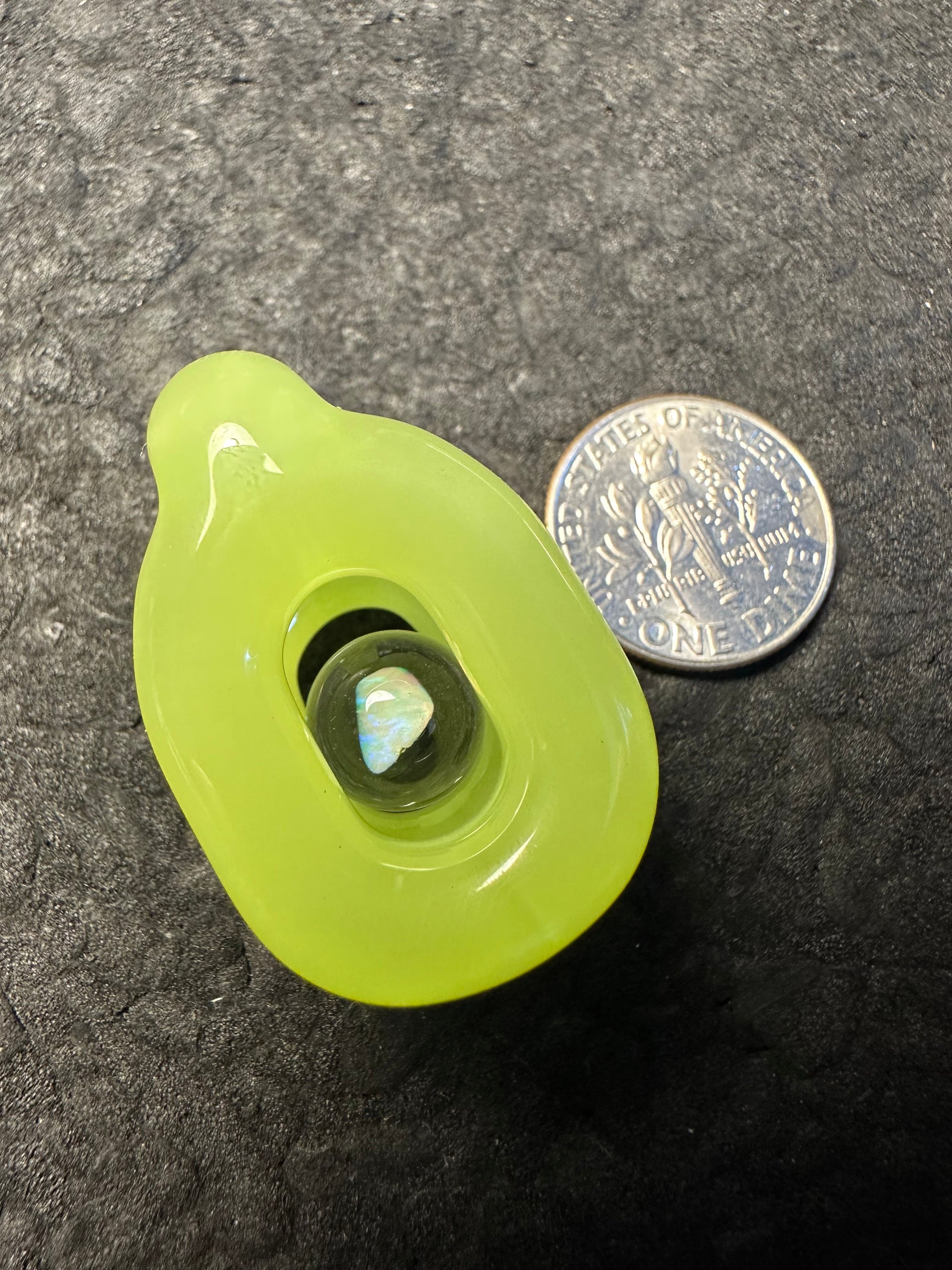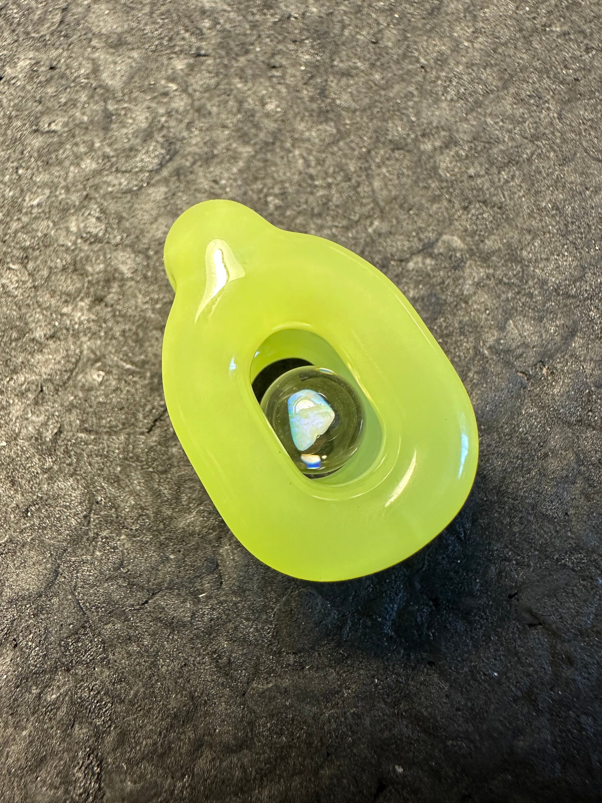 Fabricado con Antidote de @glassalchemy. Mide aproximadamente 1,5" de alto. La abertura del asa es de 6,6 mm.