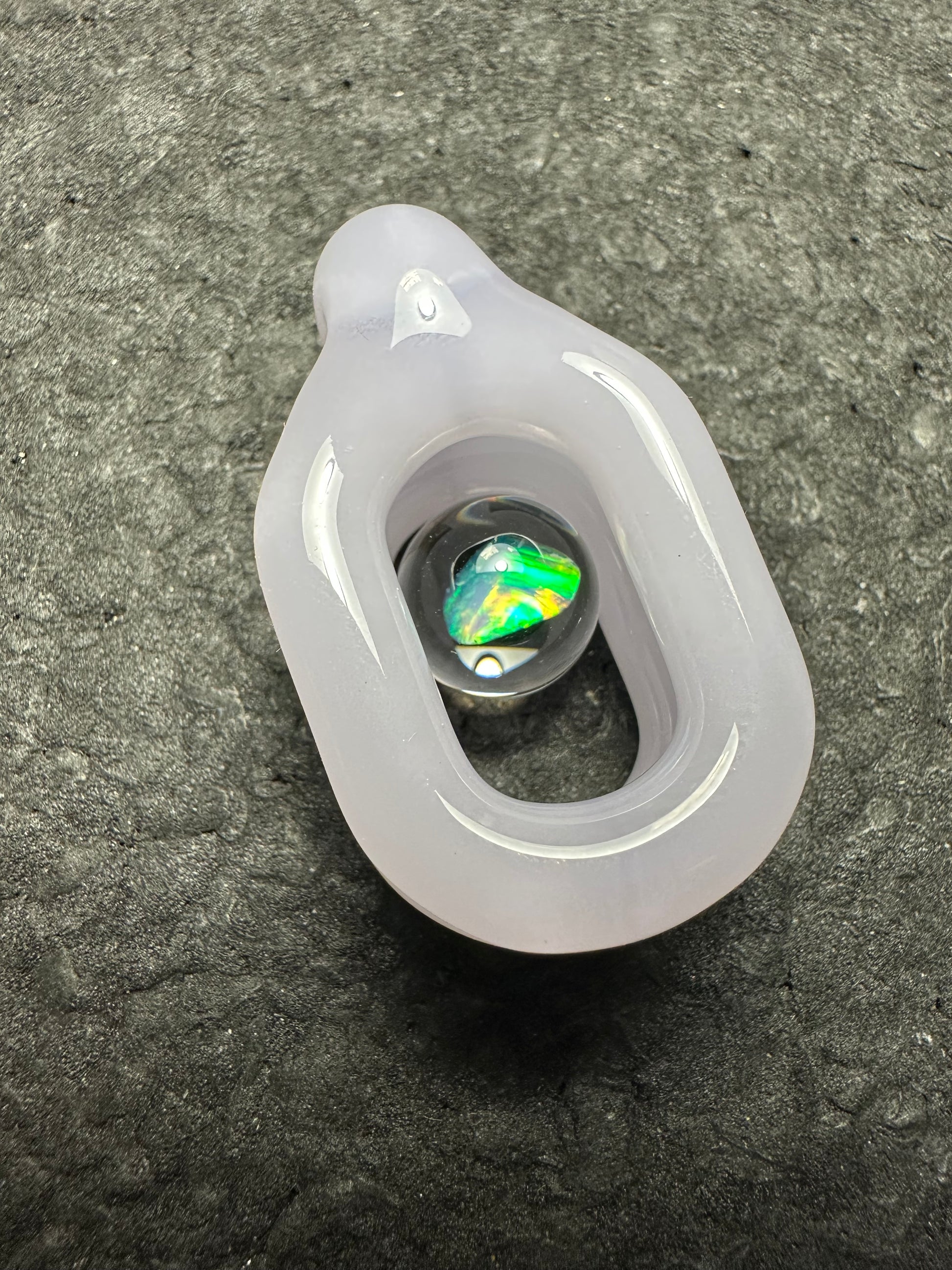 Fabricado con algodón de azúcar reactivo CFL de @glassalchemy. Mide aproximadamente 1,5" de alto. La abertura del asa es de 6,41 mm.