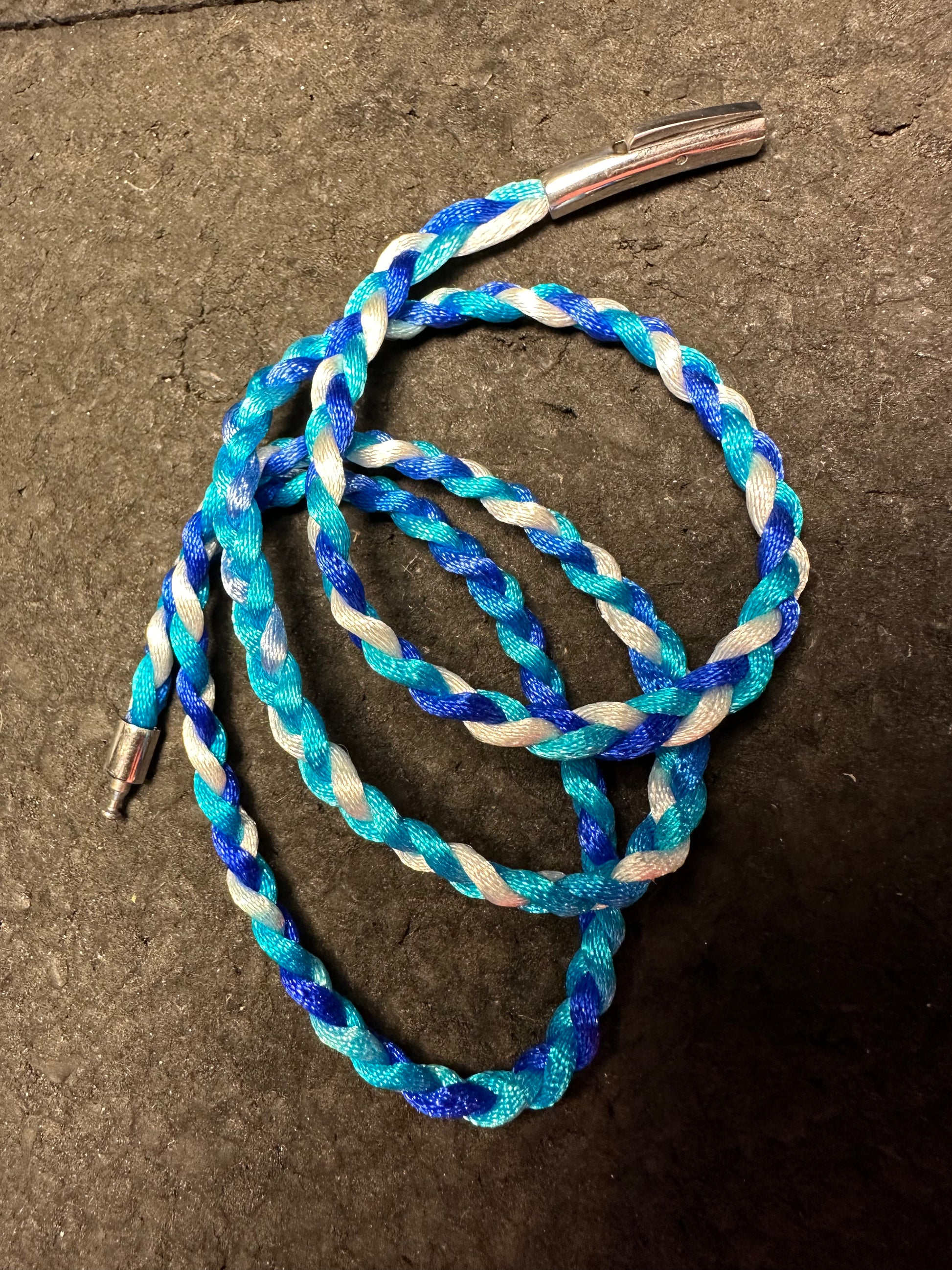 Made with premium quality Rattail Nylon cord. 22” long. Braided by yours truly. Custom sizes and colors available upon request. Clasp will fit through 5mm holes or larger. Silver clasp.