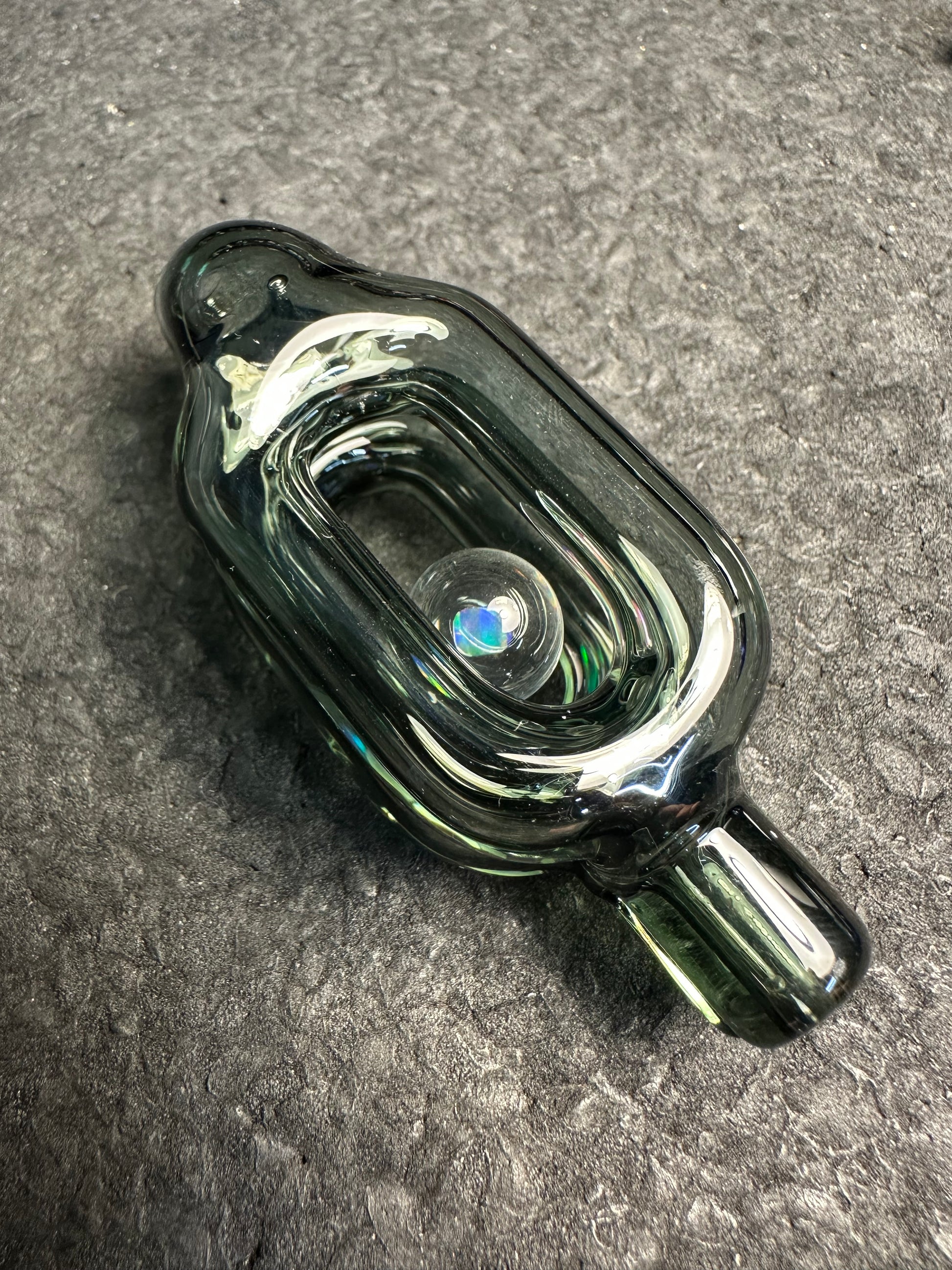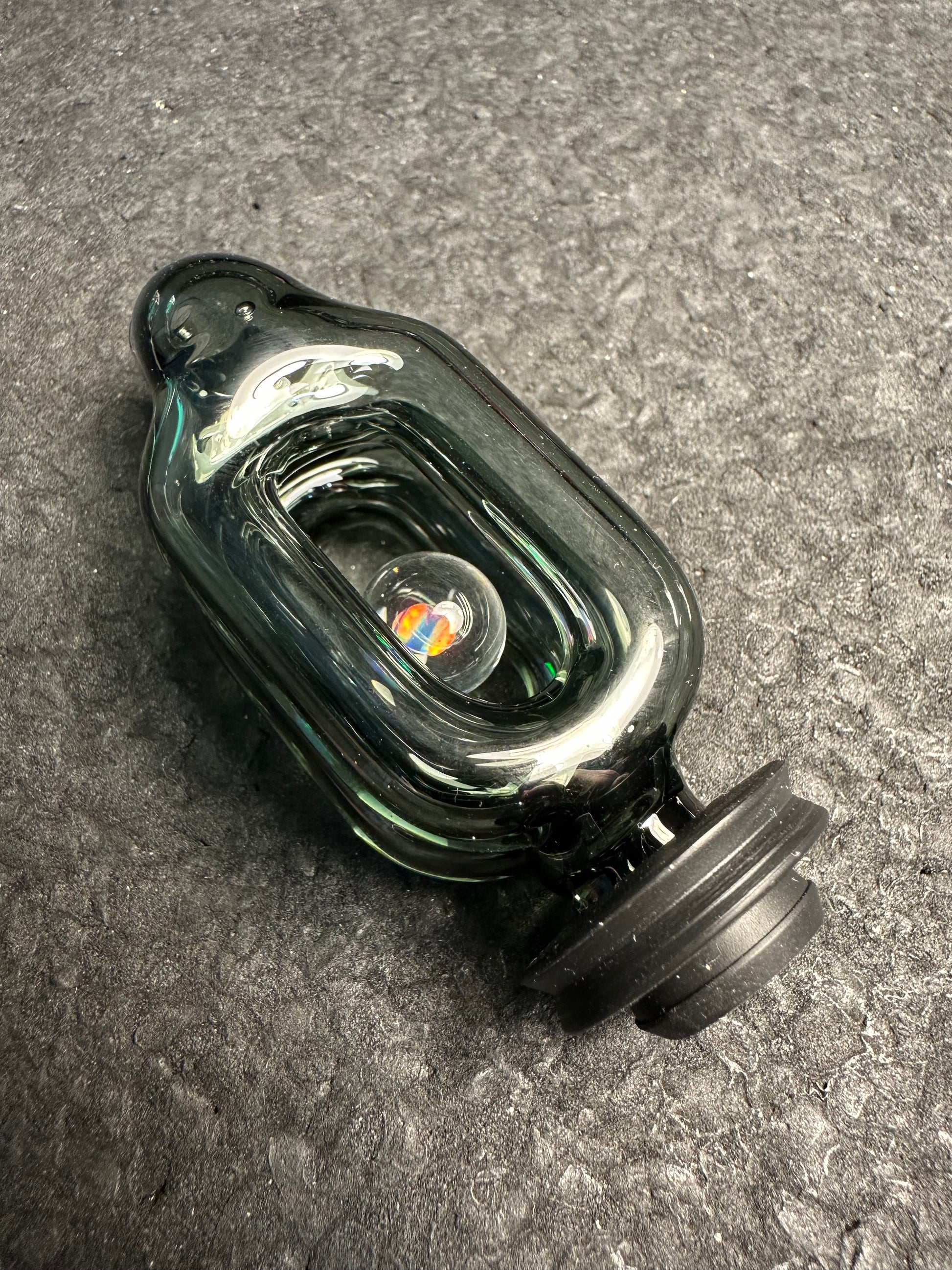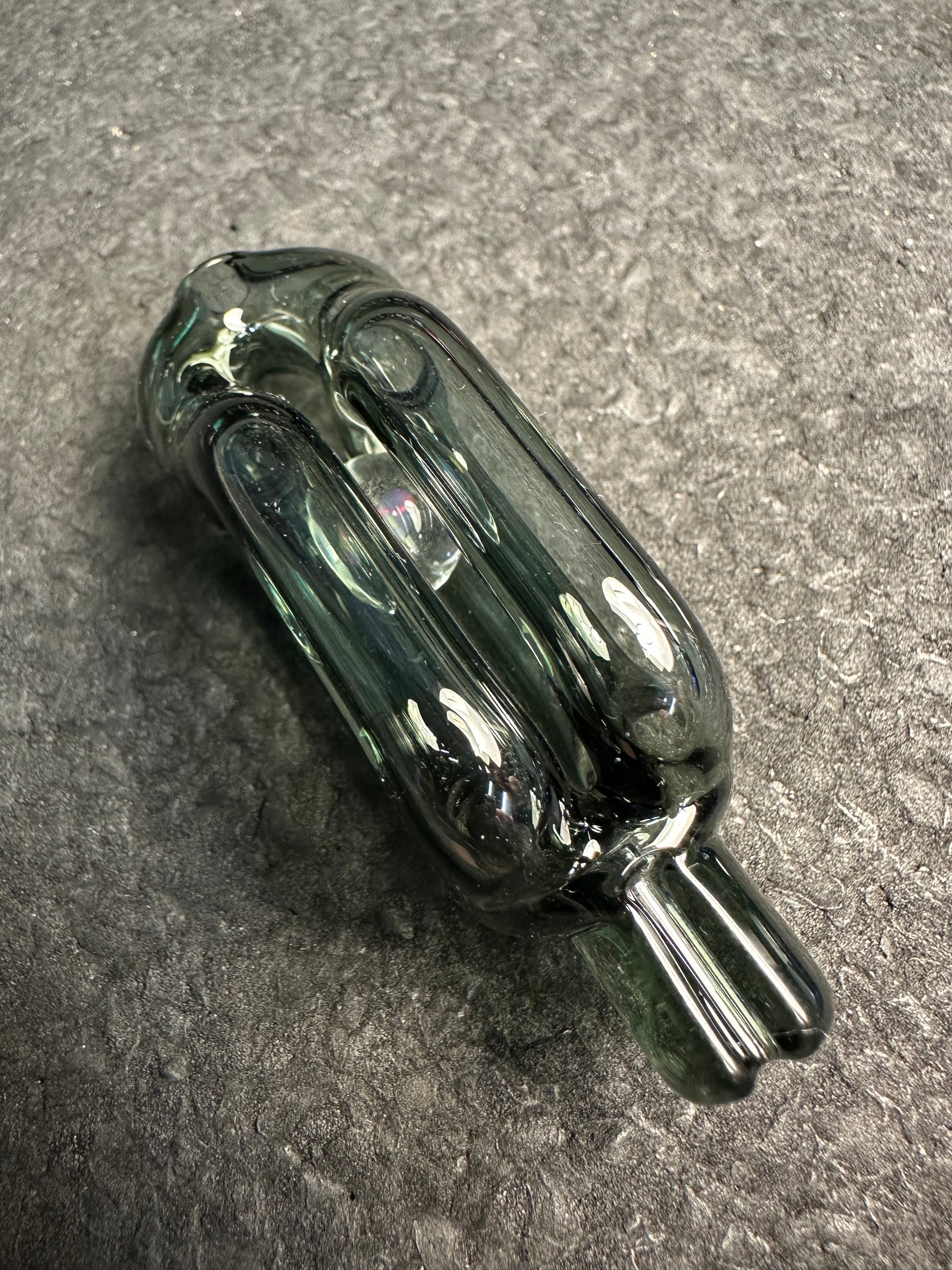 Made with 9mm Charcoal Gray tubing. About 2.75” tall. Fits Puffco Pivot devices. Comes with black rubber grommet. Hand ground tip for airflow.