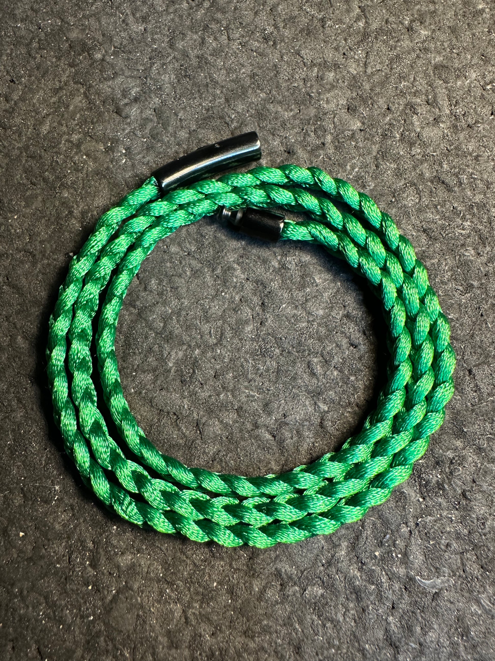 Made with premium quality Rattail Nylon cord. 24” long. Braided by yours truly. Custom sizes and colors available upon request. Clasp will fit through 6mm holes or larger. Black clasp.